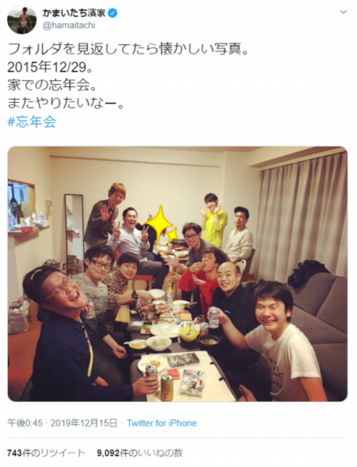 かまいたち濱家の 忘年会ショット にいいね殺到 和牛 川西ら豪華顔ぶれに 最高のメンバー 19年12月19日 エキサイトニュース
